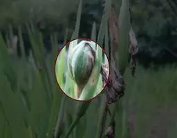 侵害根部和茎蔓基部,叶片严重萎蔫,开花结瓜后初病外观似缺水状,中午明显萎蔫,早晚尚能恢复,根部变褐或腐烂,患部溢出琥珀胶状物。