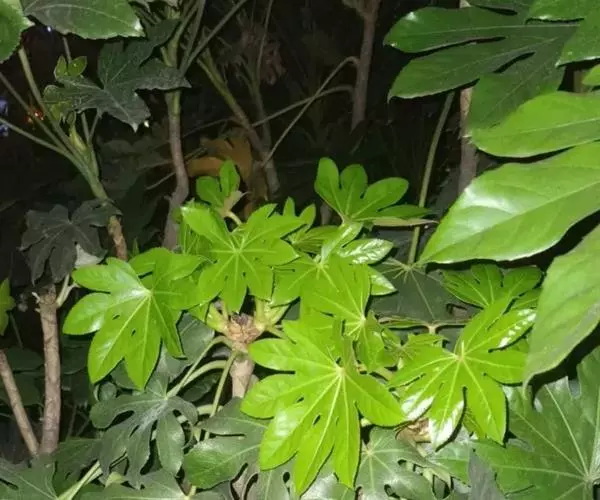 八角金盘,因其掌状的叶片,裂叶约8片,看似有8个角而名。它叶丛四季油光青翠,叶片象一只只绿色的手掌。其性耐荫,在园林中常种植于假山边上或大树旁边,还能作为观叶植物用于室内,厅堂及会场陈设。叶或根皮可入药,性温味辛、苦,具有化痰止咳,散风除湿,化瘀止痛之功效。常用于咳喘,风湿痹痛,痛风,跌打损伤。