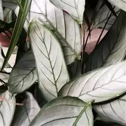 花叶竹芋(学名:Maranta bicolor Ker):竹芋科,竹芋属匍匐状分枝草本植物,植株矮小,高可达40厘米,叶片长圆形、椭圆形至卵形,基部圆或心形,边缘多少波浪形,叶面粉绿色,总状花序单生,苞片内有对花,花冠白色,裂片披针形,夏、秋开花。