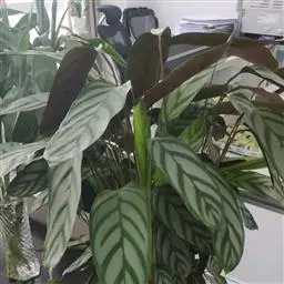 花叶竹芋喜阴,忌强阳光直晒,短时间强阳光直晒可能引起叶片的日灼病,长期晒太阳势必造成整盆植株的死亡。
