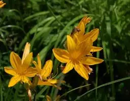 金娃娃萱草:是萱草的人工栽培的园艺品种。地下具根状茎和肉质肥大的纺锤状块根。叶基生,条形,排成两列,…