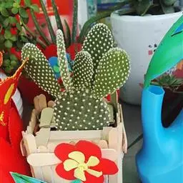 黄毛掌茎节似兔耳,是室内盆栽较普遍的小型盆栽花木,适宜摆放在卧室、书房,也可摆放在厨房。黄毛掌对二氧化硫、氯化氢的抗性较强,对一氧化碳、二氧化碳、过氮氧化物的吸收能力强,吸收分解后能释放出新鲜氧气,还可增加室内负离子数量。