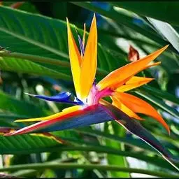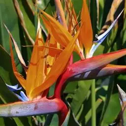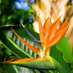 鹤望兰,别名天堂鸟,为鹤望兰科鹤望兰属的一种多年生草本植物;无木质树干;花序生于与叶柄近等长或稍短的花序梗上,佛焰苞1;花较小,萼片橙黄色,长7.5-10厘米,箭头状花瓣基部具耳状裂片,暗蓝色;花期在冬季。该物种原产非洲南部,在中国南方大城市的公园、花圃有栽培,北方则为温室栽培。性喜温暖湿润、阳光充足的气候,适宜生长的温度为25℃左右,耐干旱、较耐寒、不耐水湿,要求疏松肥沃、排水良好,以土层深厚的沙壤土为宜。因花形美丽似鹤,花开时犹如仙鹤翘首远望,花朵寿命亦长,故中文名为鹤望兰。鹤望兰素有“鲜切花之王”的美誉,是一种名贵的观赏花卉,深受广大消费者喜爱。同时,鹤望兰也宜大盆栽植,布置在公园、客厅、会议室、展厅候机室等处。鹤望兰是美国洛杉矶市的官方花卉象征。
