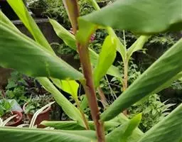 多年生草本,无茎。叶片长圆状披针形,长25-45厘米,宽约10厘米,顶端急尖,基部圆形或楔形,下部边缘波状;叶柄细长。