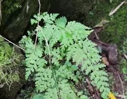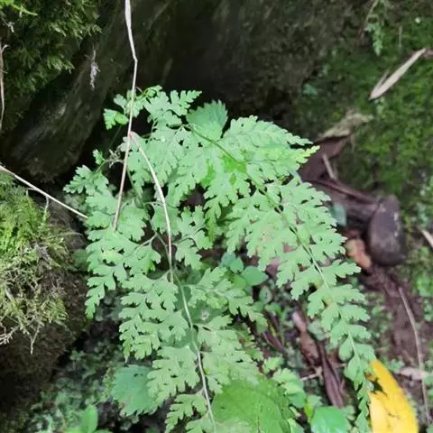 溪洞碗蕨 根状茎细长,横走,黑色,疏被棕色节状长毛。叶二列疏生或近生;柄长14厘米左右,粗仅1.5毫米,基部栗黑色,被与根状茎同样的长毛,向上为红棕色,或淡禾杆色,无毛,光滑,有光泽。叶片长27厘米左右,竟6-8厘米,长圆披针形,先端渐尖或尾头,2-3回羽状深裂;羽片12-14对,长2-6厘米,宽1-2.5厘米,卵状阔披针形或披针形,先端渐尖或尾头,羽柄长3-5毫米,互生,相距2-3厘米,斜向上,1-2回羽状深裂;一回小羽片长1-1.5厘米,宽不及1厘米,长圆卵形,上先出,基部楔形,下延,斜向上,羽状深裂或为粗锯齿状;末回羽片先端为2-3又的短尖头,边缘全缘。中脉不显,侧脉杆胭明显,弱状分叉,每小裂片有小脉1条,不到达叶边,先端有明显的纺锤形水囊。叶薄草质,干后淡缘或草缘色,通体光滑无毛;叶轴上面有沟,下面圆形,禾杆色。抱子囊群圆形,生末回羽片的腋中,或上侧小裂片先端;囊群盖半盅形,淡缘色,口边多少为囓蚀状,无毛。