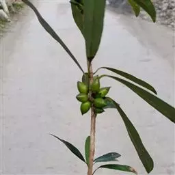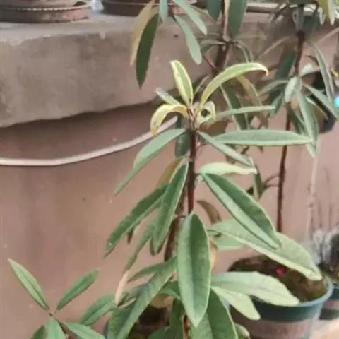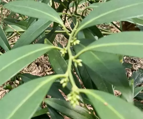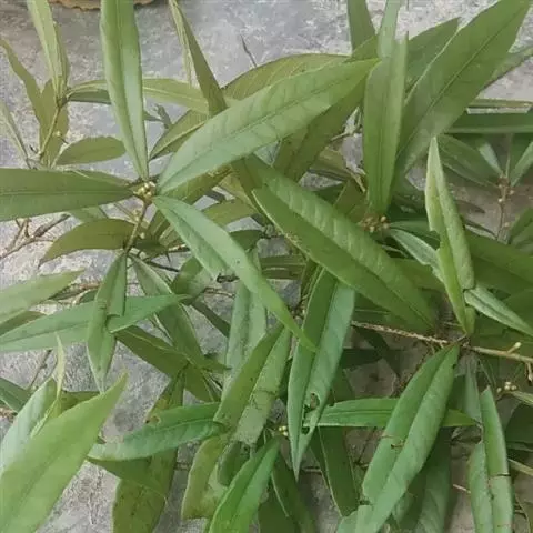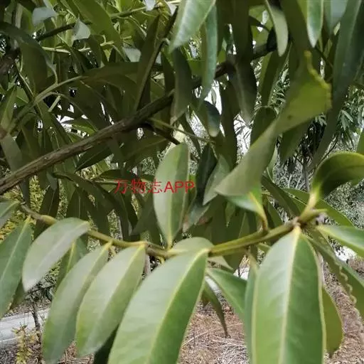 乔木。小枝黄绿色,粗壮,具4-5条棱。叶革质,狭椭圆形,长12-14厘米,宽3-5厘米,先端急尖,基部楔形,边缘具粗浅齿,两面均黄绿色;中脉在叶面凸起,侧脉每边9-14条,纤细,在叶面不明显,在叶背明显凸起;叶柄长约1厘米。