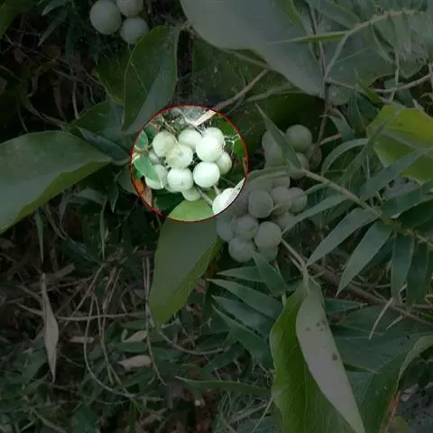 穗状花序基部有分枝,长约6厘米,其分枝长约3厘米,密被短柔毛;苞片卵形,长约3毫米,小苞片横椭圆形,宽约3毫米;花萼5裂,长约4毫米,无毛,裂片圆形,稍长于萼筒或等于萼筒,有缘毛;花冠白色,长约6毫米,5深裂几达基部,有极短的花冠筒,裂片椭圆形;雄蕊40-50枚,花丝基部联生成五体雄蕊;花盘有毛和腺点,花柱长约3毫米,柱头盘状。核果长圆形,长约15毫米,直径约8毫米,顶端宿萼直立,核骨质,分开成3分核。花期3-4月,果期8-10月。