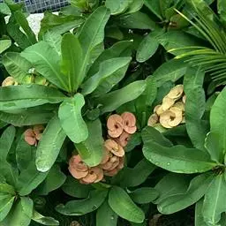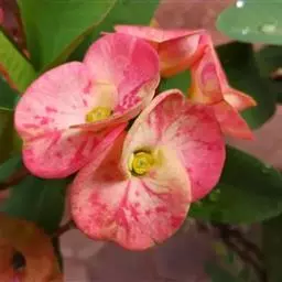 虎刺梅:别称铁海棠,是蔓生灌木植物。茎多分枝,长60-100厘米,直径5-10毫米,具纵棱,密生硬…
