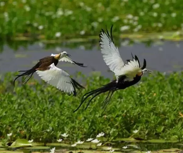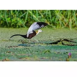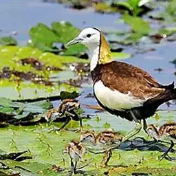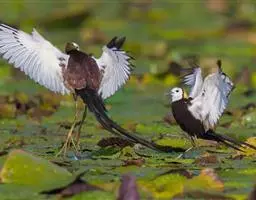 水雉 栖息于富有挺水植物和漂浮植物的淡水湖泊、池塘和沼泽地带。