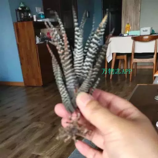 条纹十二卷株形奇特,其叶片极似一把把锉刀,又似一雏雉鸡的羽尾,十分奇特与富有趣味。栽养非常容 易,又能在室内散射光充足处正常生长,是被广大花丼爱好者广为 栽植的小型多肉植物之一。用以装饰几桌,十分美丽秀巧。