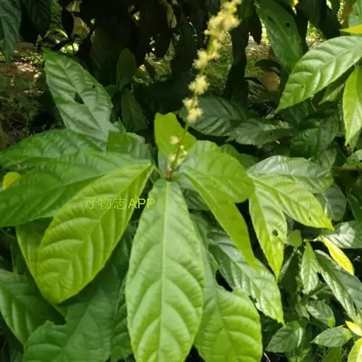 灌木或小乔木,高2-10米,植物体干后有零陵香味;小枝被星状短柔毛或变无毛,具颗粒状腺体。叶互生或有时近对生,长圆状倒卵形,长5-15厘米,宽2-6厘米,顶端急尖或尾状渐尖,下部渐狭,其部圆形或微心形,全缘或上部边缘微波状,上面无毛,下面中脉被星状毛或柔毛,侧脉腋有簇生柔毛,散生橙色颗粒状腺体;羽状脉,侧脉8-10对;基部有褐色斑状腺体4-6个;叶柄长0.5-3.5厘米;托叶卵状披针形,被星状毛,早落。