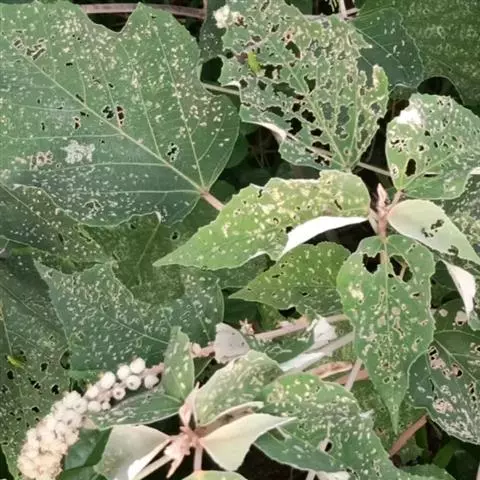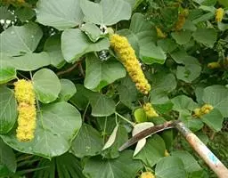 花雌雄异株;雄花序总状,顶生,长4-12厘米,苞片卵状披针形,长2-3毫米,雄花(1-)2-5朵簇生于苞腋,花梗长约3毫米;雄花:花蕾卵形,长约1.5毫米,花萼裂片3枚,阔卵形,不等大,长约1.5毫米,无毛;雄蕊25-45枚,药隔宽。雌花序总状,顶生,长7-10厘米,苞片钻形,长约2毫米,被毛,花梗长约2.5毫米;雌花:花萼佛焰苞状,长约4.5毫米,一侧开裂,顶端3齿裂,外面被星状毛和疏生黄色颗粒状腺体;子房球形,密生软刺和微柔毛,花柱中部以下合生,柱头长4-5毫米,密生羽毛状突起。蒴果扁球形。直径约1.4厘米,具3个分果爿,具3纵槽,被微柔毛和橙黄色颗粒状腺体,疏生稍弯的软刺;种子球形,直径约5毫米,具斑纹。花期2-4月,果期6-11月。