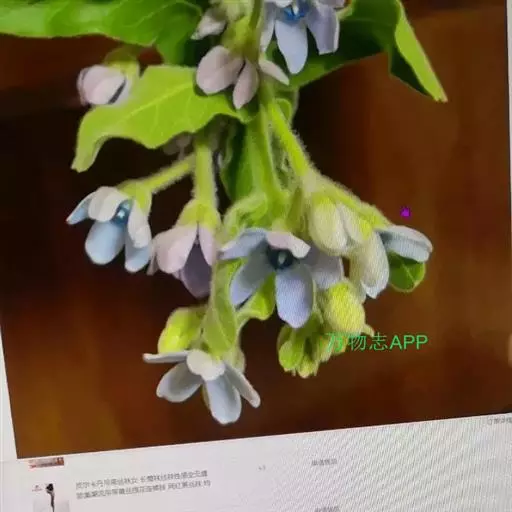 花序顶生及腋生,长约10厘米,花稀疏,集为疏松的圆锥状花序;苞片狭披针形或线形;花梗细弱,长3-10毫米,花后伸长,果期长2-4厘米,下弯,密被贴伏柔毛;花萼长2-3毫米,外面密生短柔毛,裂片卵形或卵状披针形,果期几不增大,向下反折;花冠蓝紫色,长约3毫米,檐部直径3-5毫米,深裂至下1/3,裂片卵圆形,先端微凹,喉部有5个梯形附属物,附属物长约0.5毫米;花药卵球形,长约0.6毫米,着生花冠筒中部以上;花柱肥厚,扁平。