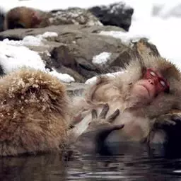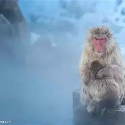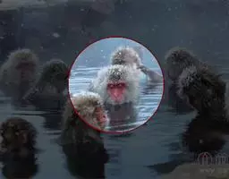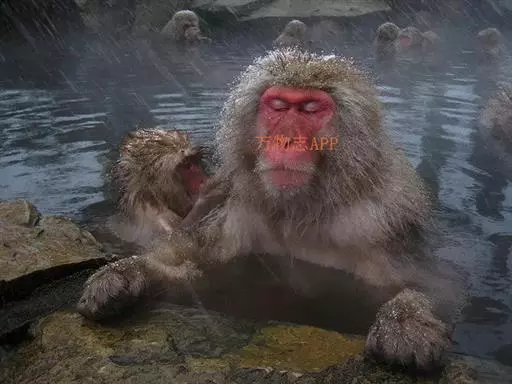 每到冬天来临时,日本猕猴的身上就经常会披满白雪,因此这种猴子被人们称为“雪猴”,由于它们较生活在热带的同类身处更加寒冷的地方,日本猕猴进化出了集体泡温泉的习性。日本长野县著名的“雪猴泡温泉”景观。