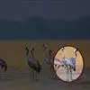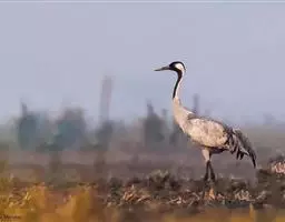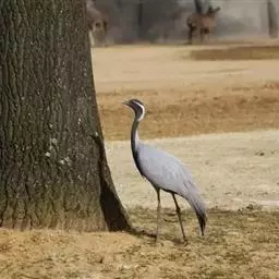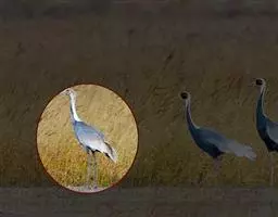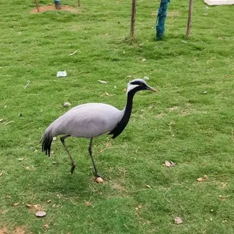 蓑羽鹤大型涉禽,体长68~92厘米,是鹤类中个体最小者。通体蓝灰色,眼先、头侧、喉和前颈黑色,…