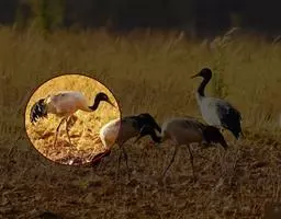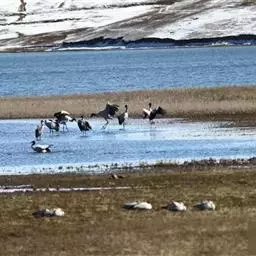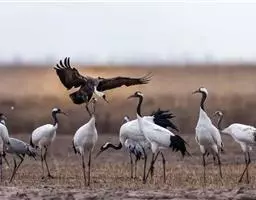 黑颈鹤:是鹤科、鹤属的大型涉禽,体长110-120厘米,体重4-6千克。颈、脚甚长,通体羽毛灰白色,…