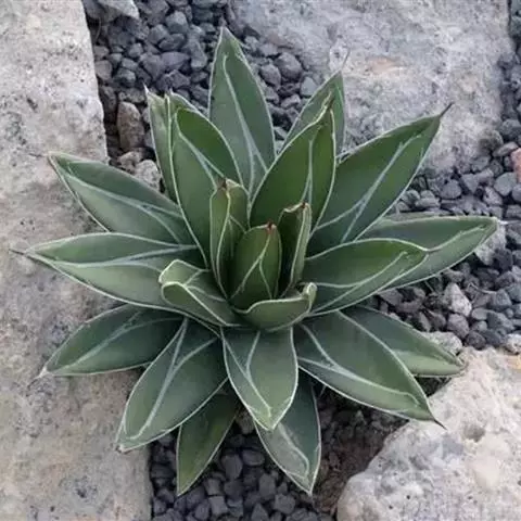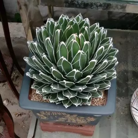 皇后龙舌兰是天门冬科、龙舌兰属多年生草本多浆植物。无主茎,叶丛生,莲座状,株幅40厘米。叶较多,…