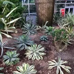 狐尾龙舌兰学名翠绿龙舌兰,又名皇冠龙舌兰和翡翠盘,是天门冬科龙舌兰属的多年生常绿植物,有明显的茎,灰白至灰褐色,叶密生于短茎上,叶片长卵形,叶色翠绿具白粉,叶呈莲座状排列,大而肥厚,肉质,边缘无刺,花排列成大型稠密的顶生圆锥花序,蒴果长椭圆形,室背 3 瓣开裂,种子多数,薄而扁平,黑色。翠绿龙舌兰喜阳光亦稍耐阴,适宜种植在阳光充足和排水良好的地方,主要分布与墨西哥。狐尾龙舌兰植株造型优美,叶片坚挺不易枯萎且不惧烈日,适合户外园艺摆设做为观叶植物,是优良庭园观赏植物,叶可抽取其纤维制作绳索,是重要的纤维作物。