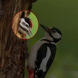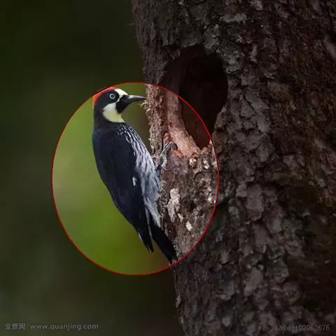 橡树啄木鸟:体长20-23厘米。前额灰黄色,头顶、后颈红色。喉下部、腰和腹部白色,…