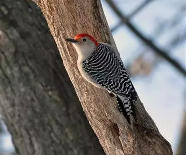红腹啄木鸟成年雄鸟头项有红帽,翅膀和上体是黑白相间的斑纹状羽毛,腹部有一片红羽毛。头亦大,但颈较长,…