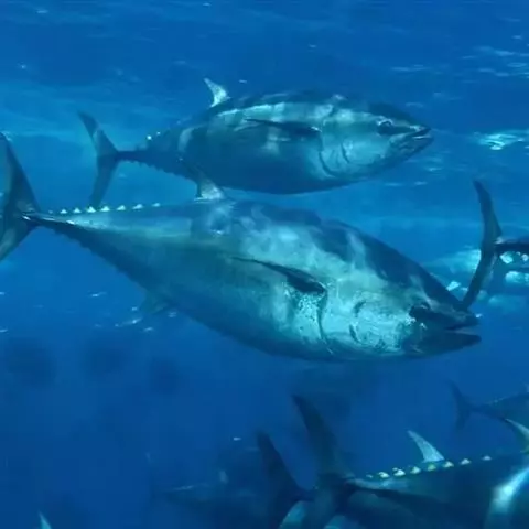 大西洋蓝鳍金枪鱼:是鲭形目、鲭科、金枪鱼属的海洋动物。体长可达3米,…