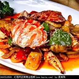 “迷踪蟹”是由缅甸黑蟹糅合了我国“南甜北咸东酸西辣”四大烹饪优点,故名“迷踪蟹”。