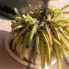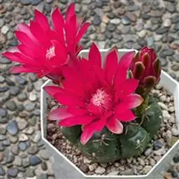 植株球形,老株变为细长筒状。球体直径10~20厘米,有3~9条明显的棱,多数为5棱。棱上的刺座无刺,但有褐色绵毛。球体灰白色密被白色星状毛或小鳞片。花朵着生在球体顶部的刺座上,漏斗形,黄色或有红心。三棱的“三角鸾凤玉”较稀有名贵,四棱的“四角鸾凤玉”也称四方玉,四条阔棱均匀对称,也很有趣。 植株单生,初始圆球形,后长成圆柱状,直径16-18厘米。