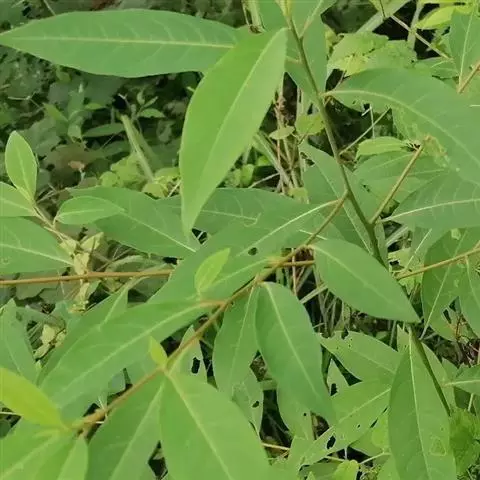 叶互生,常聚生于枝顶,披针形或倒卵状披针形,长4-15厘米,宽2-5.5厘米,先端短尖,基部楔形,膜质,幼叶下面具绢状柔毛,后脱落渐变无毛或沿中脉有稀疏毛,羽状脉,侧脉每边5-7条,叶脉在两面均突起;叶柄纤细,长1-2厘米,初时有柔毛,后脱落渐变无毛。