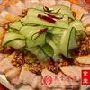 手撕鸡是一道中国的地方传统名菜。外皮金黄可谓手撕鸡的卖点之一,在金黄的鸡皮上,晶莹而散发甘香,肉质细腻,油脂适中,鲜美含汁,嚼之既不油腻也不柴硬,并带有浓郁的鲜香味,直至骨髓。