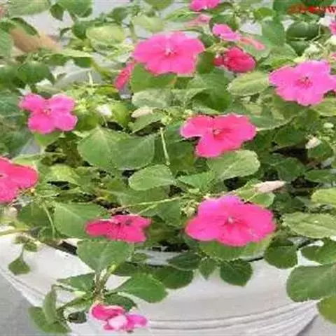 苏丹凤仙花(学名:Impatiens walleriana Hook. f.)也称玻璃翠,凤仙花科,凤仙花属多年生肉质草本植物,高可达70厘米,茎直立,绿色或淡红色,叶互生。总花梗生于茎、枝上部叶腋,2花,花大小及颜色多变化,有鲜红色,深红,粉红色,紫红色,淡紫色,蓝紫色或白色。蒴果纺锤形,6-10月开花。