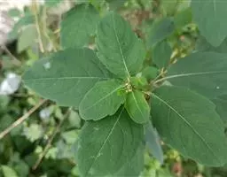 叶互生或上部螺旋状排列,具柄,叶片宽椭圆形或卵形至长圆状椭圆形,长4-12厘米,宽2.5-5.5厘米,顶端尖或渐尖,或突尖,基部楔形,稀多少圆形,狭成长1.5-6厘米的叶柄,沿叶柄具1-2、稀数个具柄腺体,边缘具圆齿状小齿,齿端具小尖,侧脉5-8对,两面无毛。