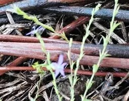 裂叶蓝钟花,为桔梗科多年生草本,有粗的木质根。茎基粗壮,多头,顶部有宿存的卵状披针形鳞片,鳞片长约4毫米,宽2.5毫米。茎多条丛生,平卧或上升,长20-50厘米,分枝或不分枝,上部疏生柔毛。