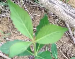 裂叶蓝钟花 叶互生,近革质,其形状、大小和分裂度多变,一般为倒披针形、倒卵状披针形或倒卵形,甚至为菱形,小的叶长仅约7毫米,宽约4毫米,大的叶长达3厘米,宽约1.2厘米,上部有大而钝的粗齿3-7 (9) 枚,基部长楔形或楔形,边缘稍反卷,两面均生短柔毛,下面较密,上面稀疏,后变无毛;具短柄或几无柄。
