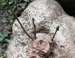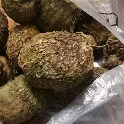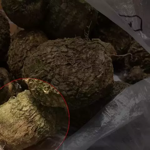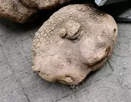 2、云南地不容:块根略扁球形,直径4-18cm,表面棕褐色至黑褐色,有不规则皱纹,可见突起的类圆形皮孔。商品切片直径2-6cm,厚3-5mm,卷曲不平。折断面黄色或灰黄色,略可见筋脉纹(三生维管束)环状排列,呈同心圆状。气微,味苦。