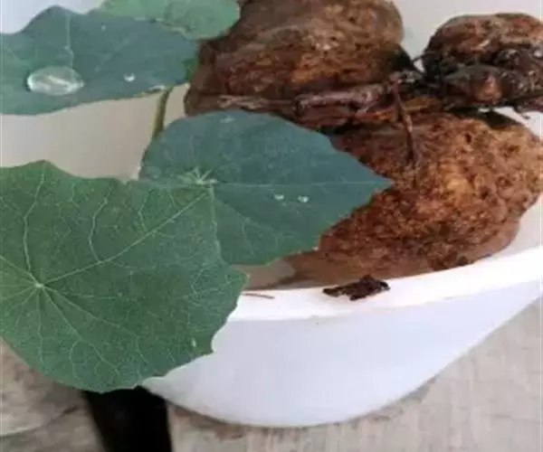 1、地不容:块根类球形或扁球形,直径4-20cm,表面棕褐色,有不规则皱纹,凹凸不平。商品多为横切或纵切片,一般直径2-7cm,厚0.3-1cm。质坚脆,易折断,断面灰黄色,隐约可见筋脉纹(三生维管束)环状排列,呈同心圆状。气微,味苦。
