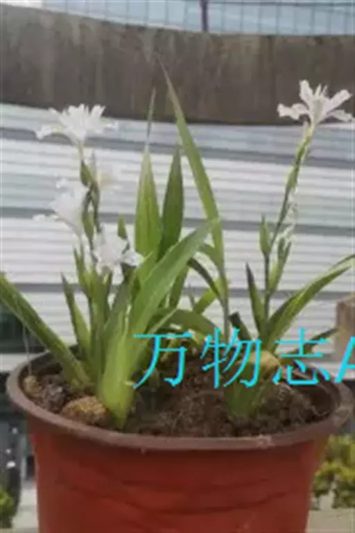 双色野鸢尾为多年生草本植物,叶子呈剑状淡绿色。…