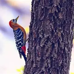 棕腹啄木鸟为啄木鸟科,啄木鸟属是中等体型的鸟类,体长约20厘米。头顶部具红色斑带。脚强健,有趾4个,…