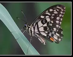 斑凤蝶,Chilasa clytia ,属于凤蝶科,外观拟态成青斑蝶,翅膀具条状与块状的灰白色斑纹…