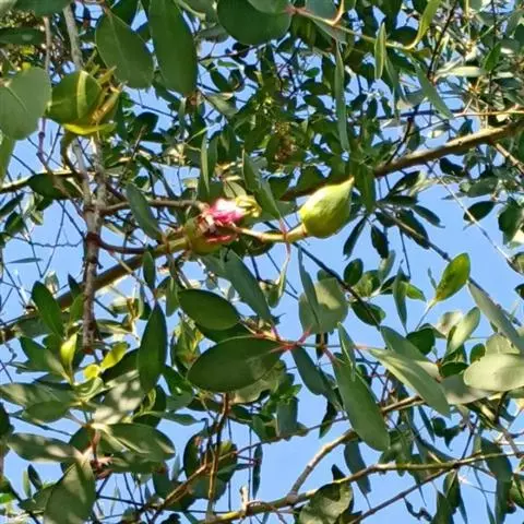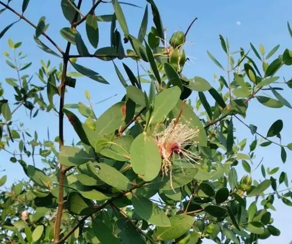 海桑 乔木,树干基部周围很多与水面垂直而高出水面的呼吸根。 高5-6米;小枝通常下垂,有隆起的节,幼时具钝4棱,稀锐4棱或具狭翅。叶形状变异大,阔椭圆形、矩圆形至倒卵形,长4-7厘米,宽2-4厘米,顶端钝尖或圆形,基部渐狭而下延成一短宽的柄,中脉在两面稍凸起,侧脉纤细,不明显;叶柄极短,有时不显著。
