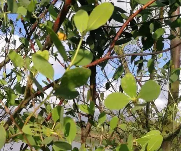 物种现状:濒危种。为发现的稀有物种,分布区极狭小,仅有5株,树高8米的仅有1株,其基围2.3米,树冠扩展,其余株比较矮小,散生于林缘。公于海南辩证齐县海边的红树林内,林地距离低潮线80-100,粮有时地面高有线20-30厘米。