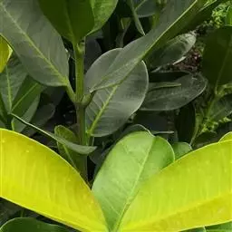 叶片厚革质,具光泽,椭圆形或椭圆状矩圆形,长14-2 5厘米,宽5-10厘米,顶端短渐尖,基部宽楔形或近圆形,中脉两面隆起,侧脉密集,多达40 50对,在边缘内联结;叶柄粗壮,长约2厘米,干时具密的横皱纹。