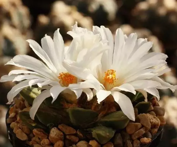 光线:对于生长在墨西哥北部的岩牡丹植物来说,适中的日照强度对植株的生长尤为重要。在野生环境下,大多野生岩牡丹植物被石土半掩埋在地下,能够有效抵抗高强度阳光的直射。太阳光能够保持其叶片的紧密性,同时促进根系的发展,使植株健康成长。当然,高强度光照能够促进硕大根系的形成,同时也会使植株叶片发黄、干缩,这对于爱好者养殖而言从失去了一定的观赏性(特别大多园艺品种,在强光下将迅速发黄、干缩,从而失去园艺观赏性),同时对于刚上盆的植株,高强的光照将使其迅速脱水,甚至导致死亡。
