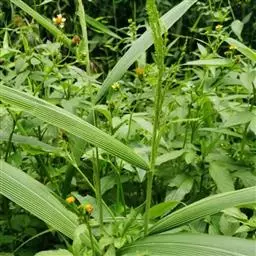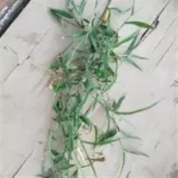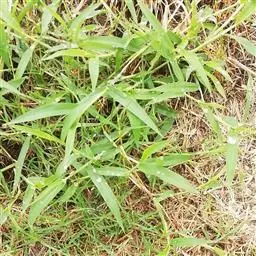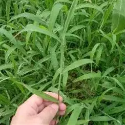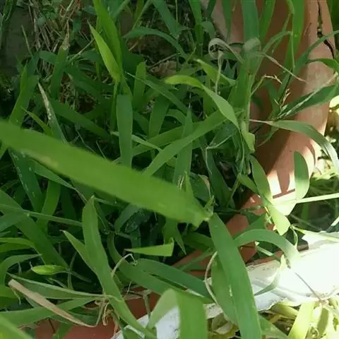 紫马唐,别名:五指草,拉丁文名:Digitaria violascens Link.,是单子叶植物纲、禾本科、马唐属 一年生直立草本。秆疏丛生,基部倾斜,具分枝,无毛。叶鞘短于节间,无毛或生柔毛;叶片线状披针形,质地较软,扁平,粗糙,基部圆形,无毛或上面基部及鞘口生柔毛。边缘微粗糙;小穗椭圆形,小穗柄稍粗糙;第一颖不存在;第二颖稍短于小穗,脉间及边缘生柔毛;脉间及边缘生柔毛;毛壁有小疣突,中脉两侧无毛或毛较少,顶端尖,有纵行颗粒状粗糙,紫褐色,革质,有光泽; 花果期7-11月。