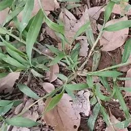 紫马唐 一年生直立草本。秆疏丛生,高20-60厘米,基部倾斜,具分枝,无毛。叶鞘短于节间,无毛或生柔毛;叶舌长1-2毫米;叶片线状披针形,质地较软,扁平,长5-15厘米,宽2-6毫米,粗糙,基部圆形,无毛或上面基部及鞘口生柔毛。