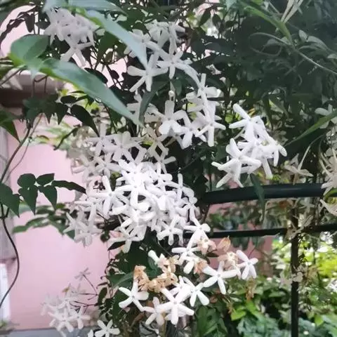 素馨花,木犀科素馨属多年生的攀援灌木植物。攀援灌木,小枝圆柱形,具棱或沟;叶对生,叶轴常具窄翼,…
