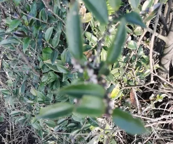 柃木,Eurya japonica Thunb,山茶科柃木属植物,分布华东、华南、西南各地。可植为绿篱或于草地边缘种植,也可切枝供插花之用。枝叶可入药,果实作染料。