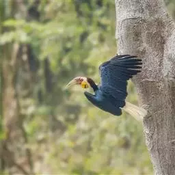 每年春季以后,成对的犀鸟,便选择高大的树干上的洞穴作巢,一般都是利用白蚁蛀蚀或树木天长日久朽蚀后形成的大洞。