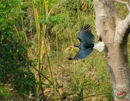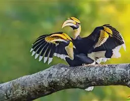 犀鸟(Anthracoceros albirostris)是一种奇特而珍贵的大型鸟类,佛法僧目犀鸟科,为本科动物的统称。犀鸟以某些种类上嘴基部的骨质盔突而著名。嘴就占了身长的1/3到一半,宽扁的脚趾非常适合在树上的攀爬活动,一双大眼睛上长有粗长的眼睫毛。最古怪的是在它的头上。长有一个铜盔状的突起,叫做盔突,就好像犀牛的角一样,故而得名犀鸟。主要分布于非洲及亚洲南部,大部分犀鸟生活在非洲和亚洲的热带雨林地区,以树上那些多半是啄木鸟啄出来的空洞为巢。
