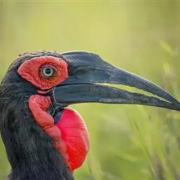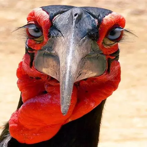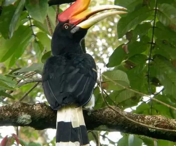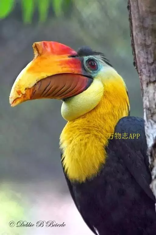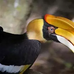 犀鸟 犀鸟一般头大,颈细,翅宽,尾长。羽衣棕色或黑色,通常具鲜明的白色斑纹。体长在70~120厘米左右,嘴就长达35厘米,占了身长的1/3到一半,一双大眼睛上长有粗长的眼睫毛,这是其它鸟类中所少有的。它的大嘴和盔突显得很笨重,其实非常灵巧。 采食浆果、捕食老鼠昆虫、修建巢穴等等工作大嘴都能灵巧地完成。