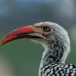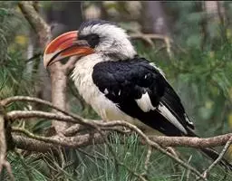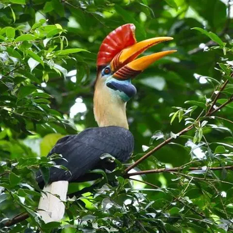红嘴弯嘴犀鸟 犀鸟是一种珍贵而漂亮的鸟类,一般寿命在30~40岁左右,最高寿的可达50岁。